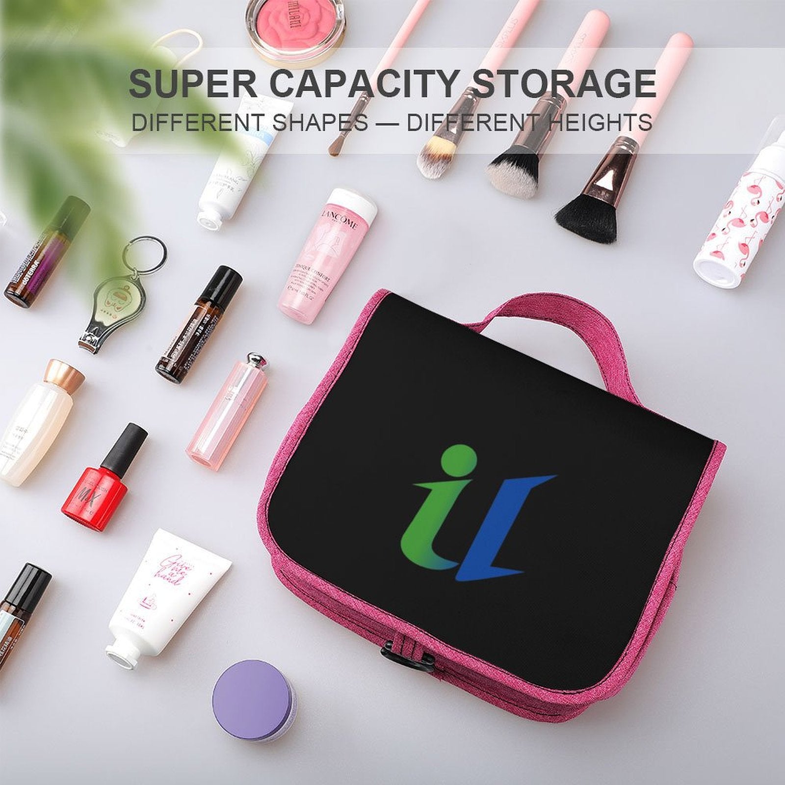•A main compartment with multiple pockets allows you to neatly organize your skincare products, cosmetics, and other items you need.